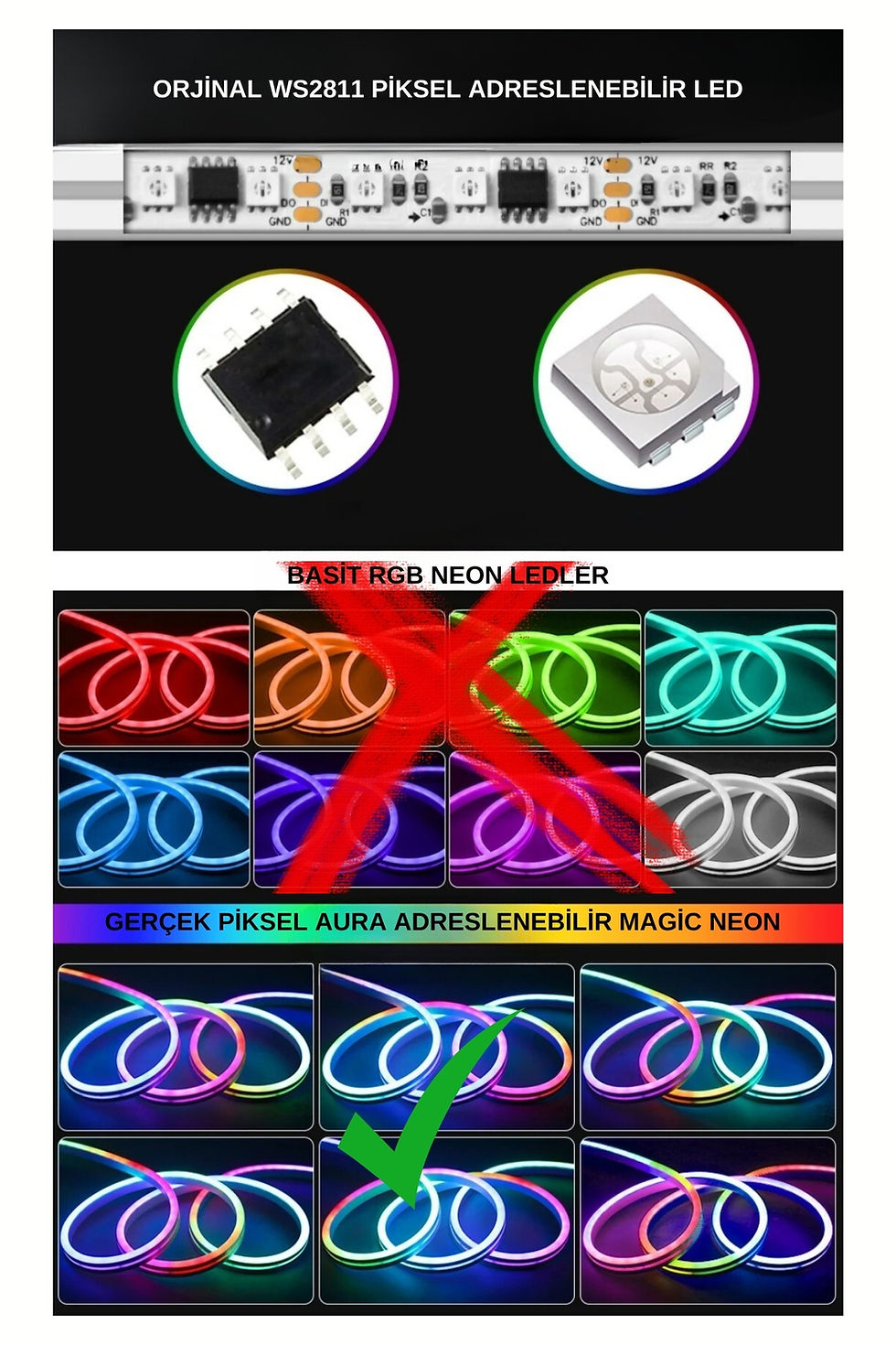 WS2812B 12V. 2.7mm 160 LED/mt. IP30 İÇ MEKAN MAGİC LED Kopyası